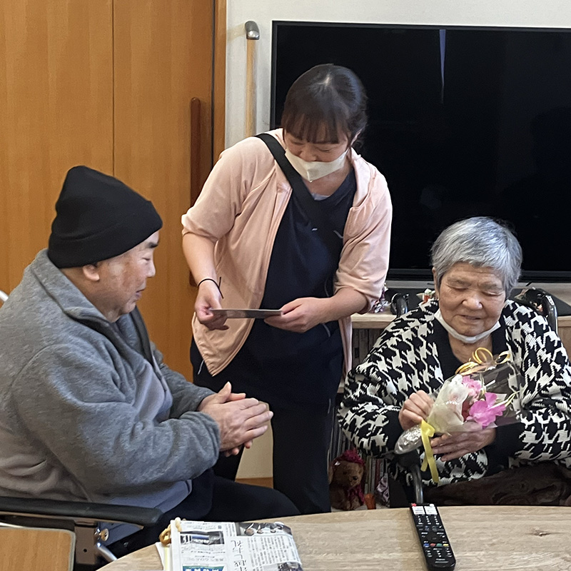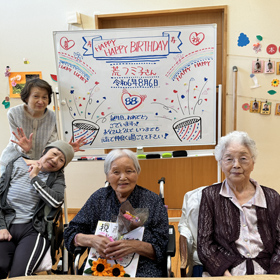 カンタキ●●●●って? ”看護小規模多機能型居宅介護”の略称で、通い・泊まり・訪問看護・訪問介護を一つの事業所で一体的に提供する地域密着型のサービスです。 HOCカンタキの特徴 ひとりひとりの生活において医療と介護がしっかり連携・一体化することで、24 時間365日切れ間なく柔軟に生活支援していきます。 リハビリ 理学療法士は、送迎業務を含む介護業務にかかわり日常生活動作を把握し、その方に合った介護指導等も行っています。 利用事例 HOCカンタキは利用者さんのニーズに合わせた様々な利用方法があります。利用事例やその場合の料金などを紹介していきます。 施設説明 HOCカンタキの施設紹介です。利用者さんが安心して過ごせるようなアットホームな施設作りを目指しています。