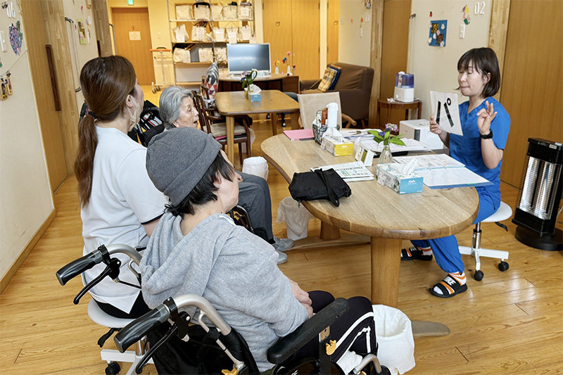 • それぞれの利用者さんの機能をアセスメントしながら昼食前の口腔体操を担当しています。